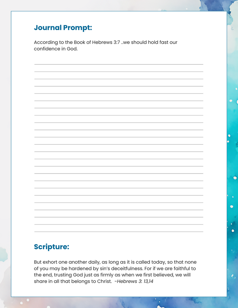 This 31 Days Bible Study Journal is a companion to the the Book Of Hebrews study, it comes equipped with 33 pages for journaling and studying, providing you with a comprehensive guide for immersing yourself in God's Throne of Grace. This printable Bible Study aide is 8.5 x 11, 33 pages, space for prayerful thoughtful journaling with Scripture reference. Free Gift - beautiful Wall Art graphic Included 8.5 x 11 Printable