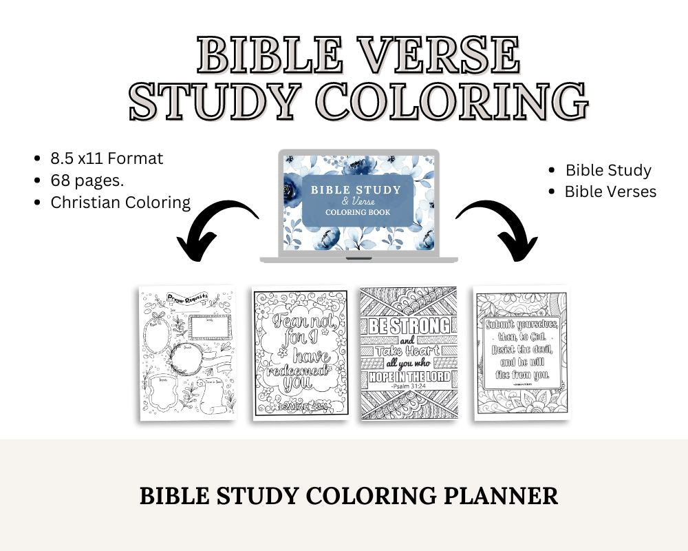 Christian Coloring Pages with Bible Verse Coloring and Bible Study Planner - designed to aid with meditating God's Word while creating a refreshing illustration. Immerse yourself in God's Word with our Bible Verse Coloring Book. Featuring 52 pages of Christian coloring pages and a Bible study planner, you can meditate on scripture while creating beautiful illustrations. The perfect size to carry with you, Digital Download 8.5 x 11 format.
